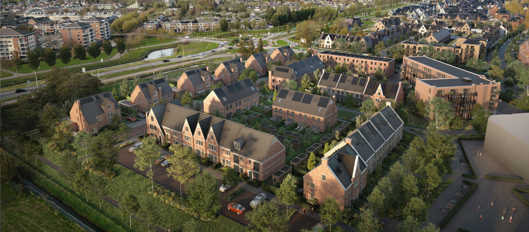 Bekijk de conceptbeelden van Park Vredenburgh in Waddinxveen. Waar de eerdere schetsen vooral de grote lijnen lieten zien, zie je nu hoe de woningen vorm krijgen. Heb je de details in het metselwerk al gespot? Van gevel tot tuin, van raam tot dak, het begint nu écht te leven! Let op: deze beelden zijn nog niet definitief. Er worden nog puntjes op de i gezet. Zodra de definitieve beelden beschikbaar zijn, delen we deze graag met je.